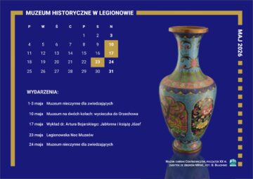 Maj w MuzeumZapraszamy na nasze majowe wydarzenia muzealne: 10 maja – Muzeum na dwóch kołach: wycieczka do Orzechowa start o godz. 10:30 sprzed siedziby Filii ,,Piaski” Uwaga! W dniu wydarzenia obie placówki Muzeum są zamknięte dla zwiedzających 17 maja – Wykład dr. Artura Bojarskiego pt. ,,Jabłonna i książę Józef” godz. 15:00, Filia ,,Piaski” 23 maja – Legionowska Noc Muzeów start godz. 15:00, siedziba główna Muzeum 1-3 oraz 24 maja Muzeum będzie nieczynne dla zwiedzających