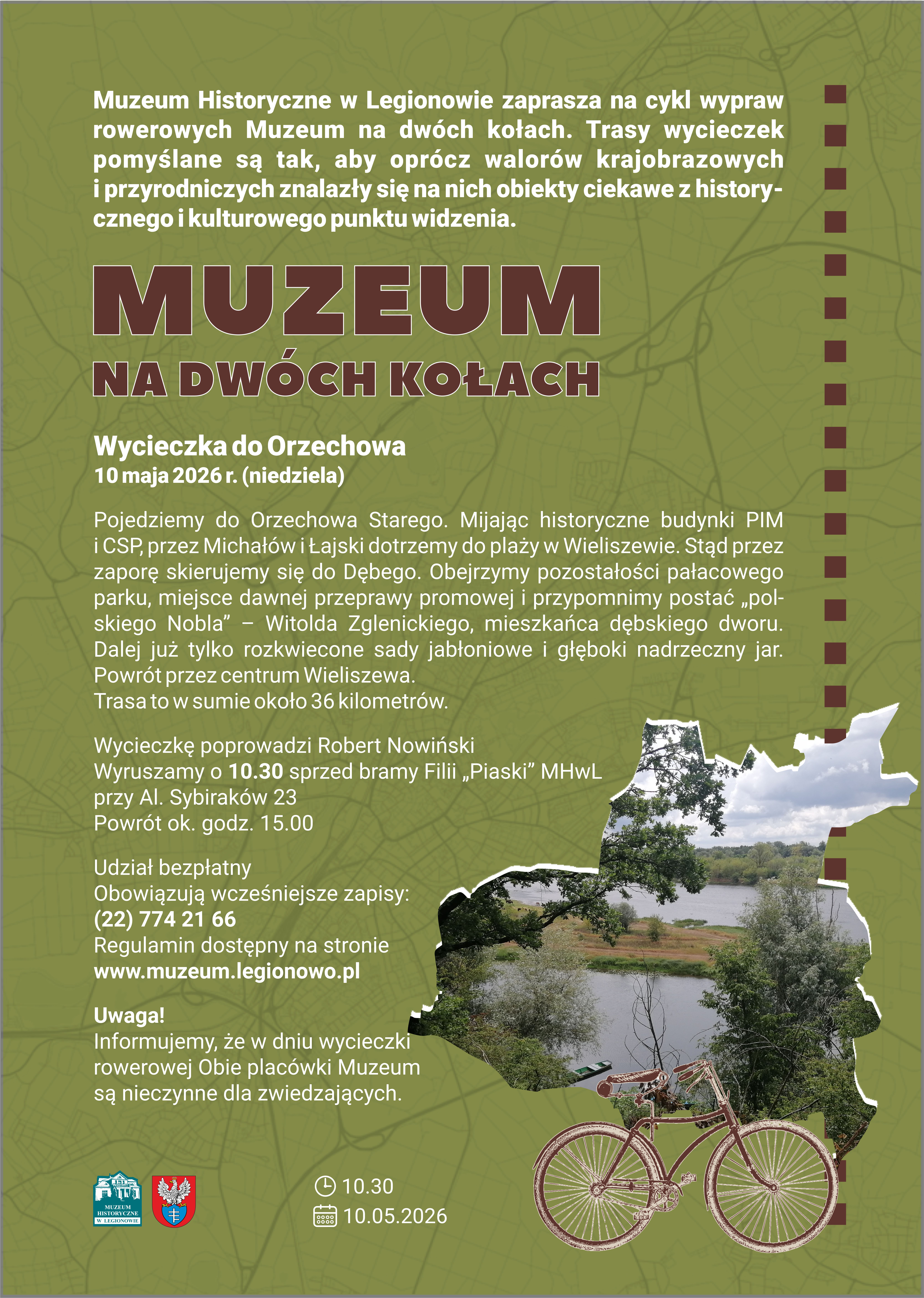 Muzeum Historyczne w Legionowie zaprasza na cykl wypraw rowerowych Muzeum na dwóch kołach. Trasy wycieczek pomyślane są tak, aby oprócz walorów krajobrazowych