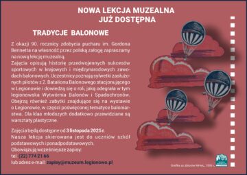 Z okazji 90. rocznicy zdobycia pucharu im. Gordona Bennetta na własność przez polską załogę zapraszamy na nową lekcję muzealną pt. ,,Tradycje balonowe”.