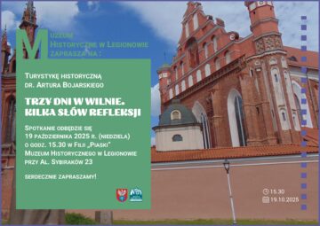 Serdecznie zapraszamy na wydarzenie organizowane w ramach nowego cyklu spotkań – Turystyka historyczna dr. Artura Bojarskiego: Trzy dni w Wilnie. Kilka słów refleksji.