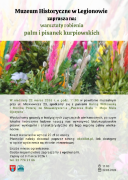 W niedzielę 22 marca 2026 r. o godz. 11:00 w pawilonie muzealnym przy ul. Mickiewicza 23, spotkamy się z paniami Haliną Witkowską i Moniką Poteraj ze Stowarzyszenia ,,Puszcza Biała — Moja Mała Ojczyzna”.