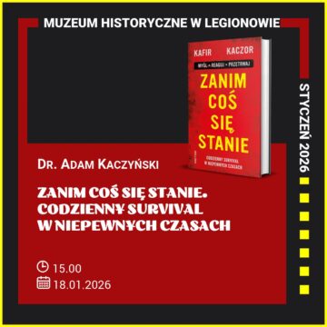 Serdecznie zapraszamy na promocję książki dr. Adama Kaczyńskiego pt. ,,Zanim coś się stanie. Codzienny survival w niepewnych czasach". Spotkanie odbędzie się 18 stycznia 2025 r. (niedziela) o godz. 15:00 w Filii ,,Piaski'' Muzeum Historycznego w Legionowie przy Al. Sybiraków 23